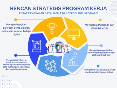 - Mengembangkan strategi promosi kampus yang efektif melalui berbagai media cetak dan online untuk meningkatkan citra dan daya saing institusi di tingkat nasional.